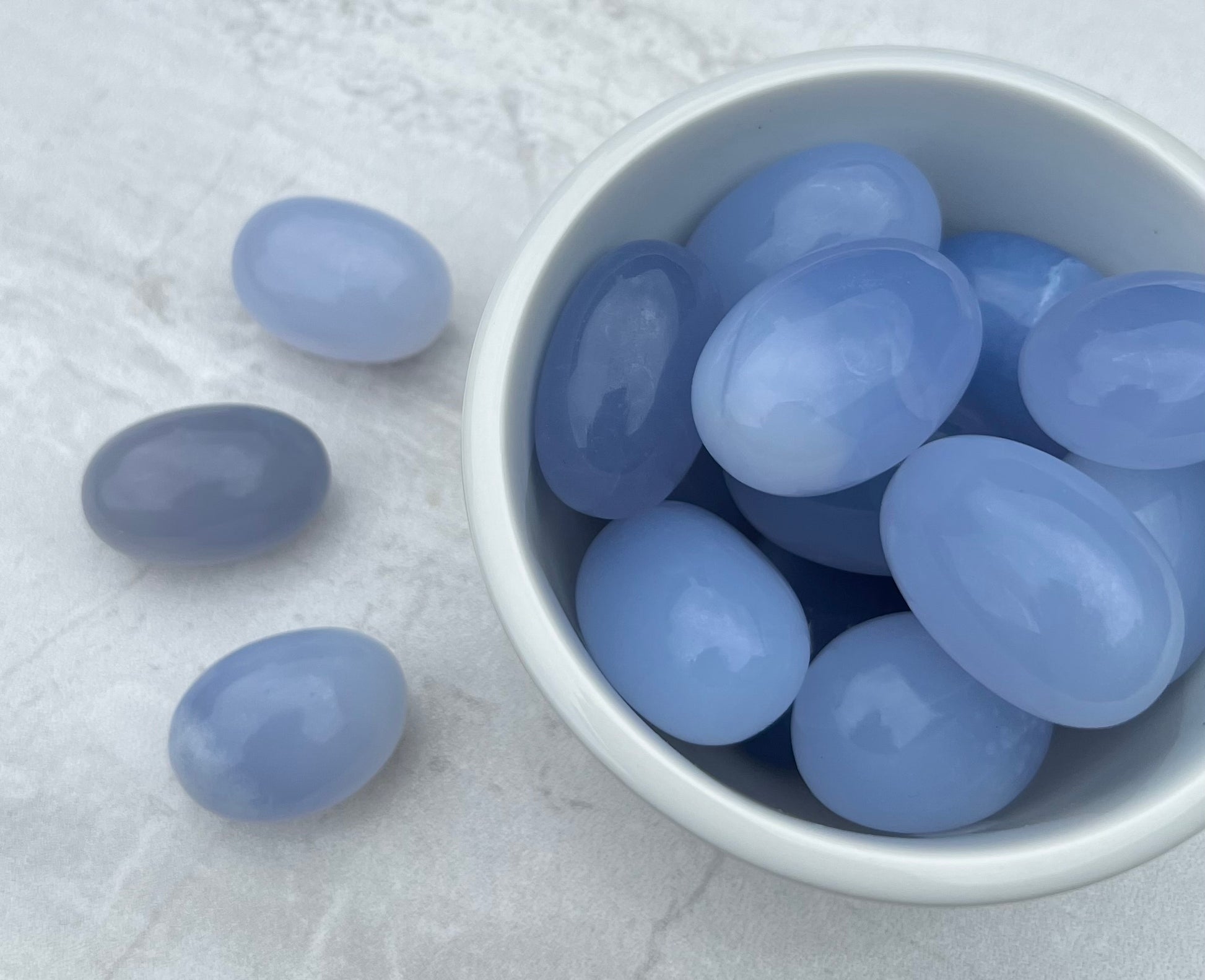 Blue Chalcedony has an incredibly nurturing and calming energy too, helping to reduce stress, anxiety and tension soothing any irritability. It encourages a sense of inner peace and tranquility. Blue Chalcedony is associated with self-acceptance and self-confidence, helping you embrace your truest self and release self-doubt and negative self-talk.