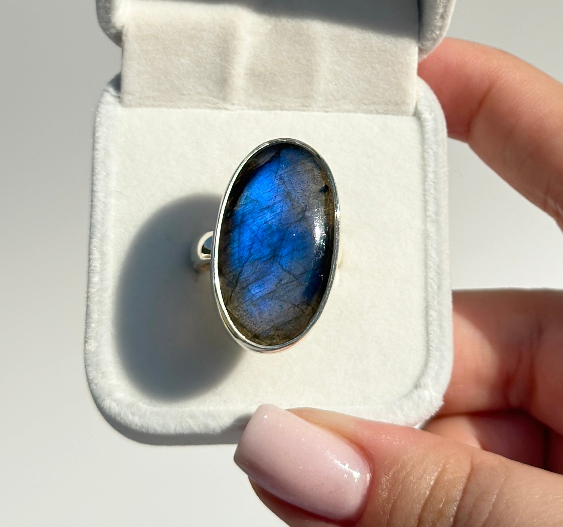 Blue Flash Labradorite Ring - Adjustable