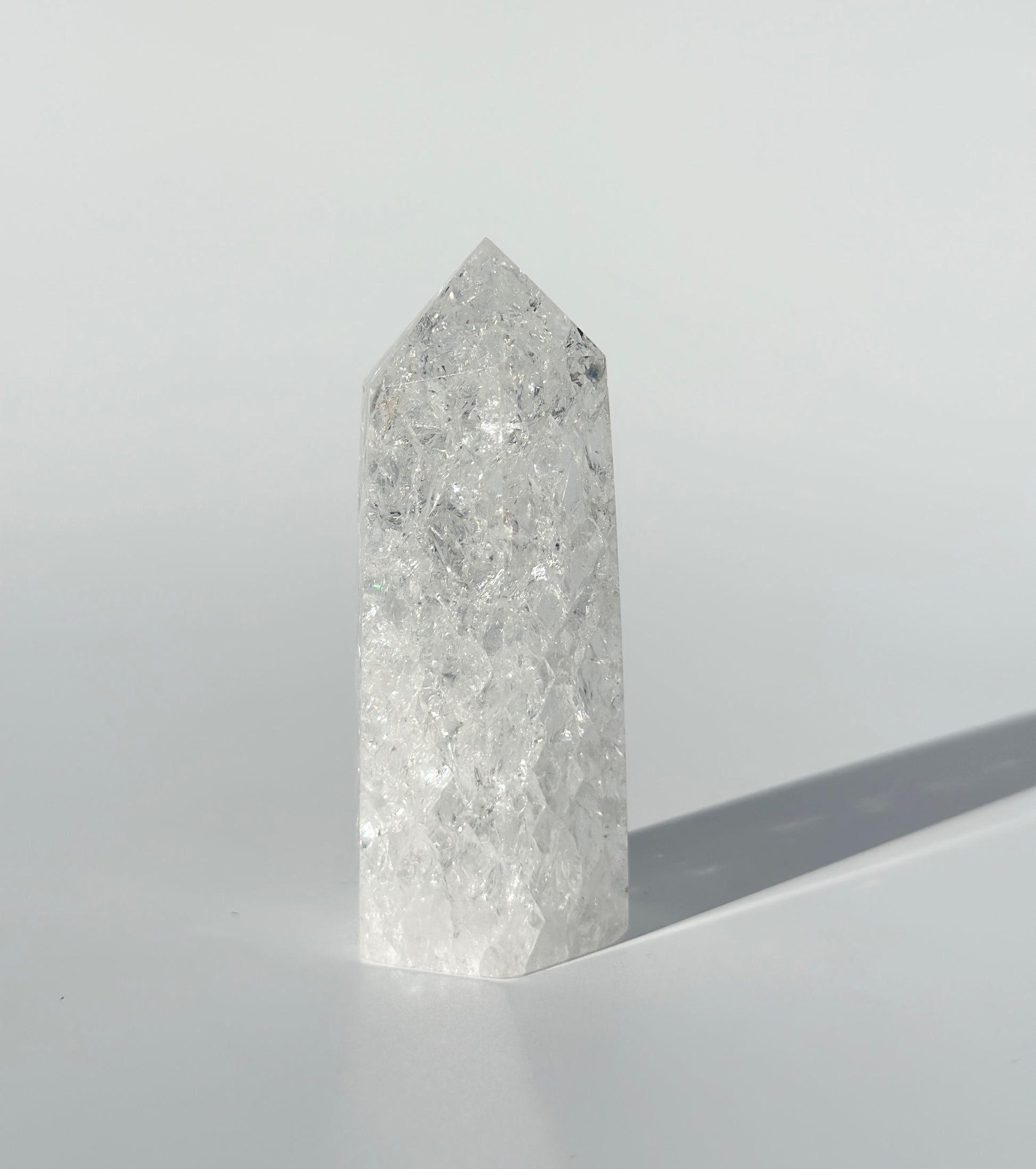 Crackle Quartz is a variety of Clear Quartz which has been heated to create internal fractures, producing many internal rainbows. Crackle Quartz is often referred to as the 'Master Healer' since it's highly versatile and well known for purifying and amplifying energies. Its restorative energy works to balance all chakras, but is highly connected to the Crown chakra helping to clear and open the mind, encouraging you to listen to your inner voice.