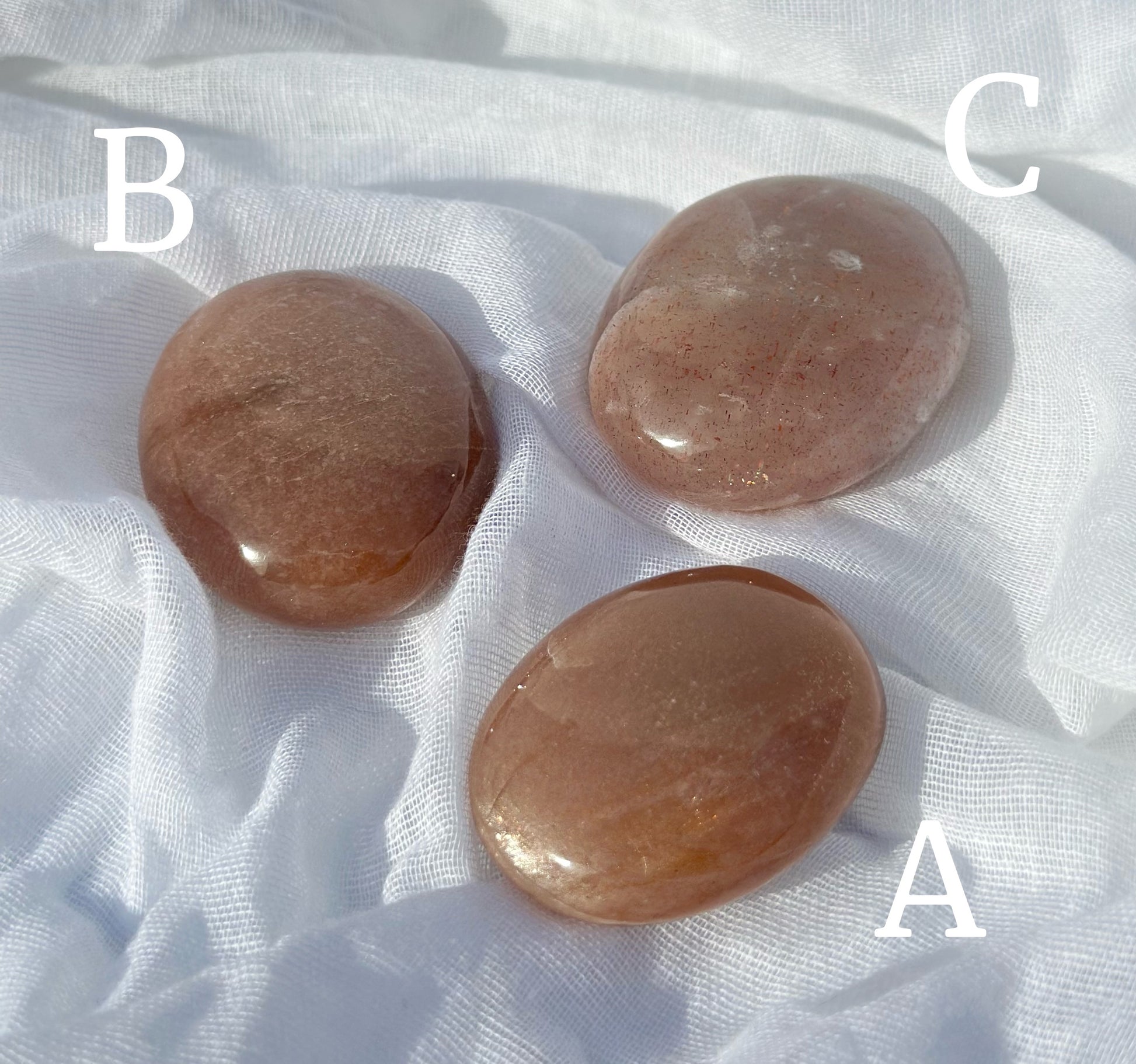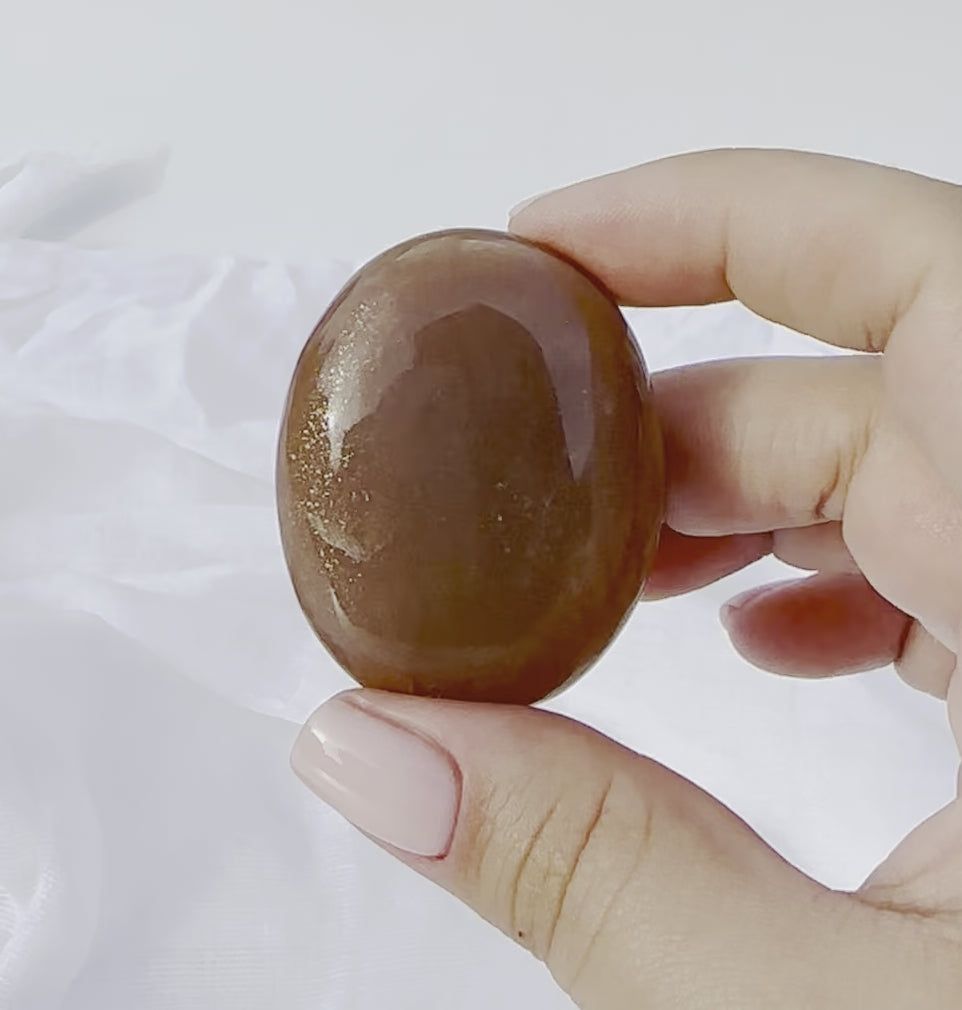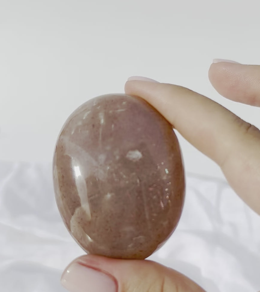 Peach Sunstone Moonstone is a natural combination of two beautiful, complementary energies. This crystal brings the nurturing, feminine, loving properties from Peach Moonstone and pairs it with the positive, optimistic, joyful qualities of Sunstone.